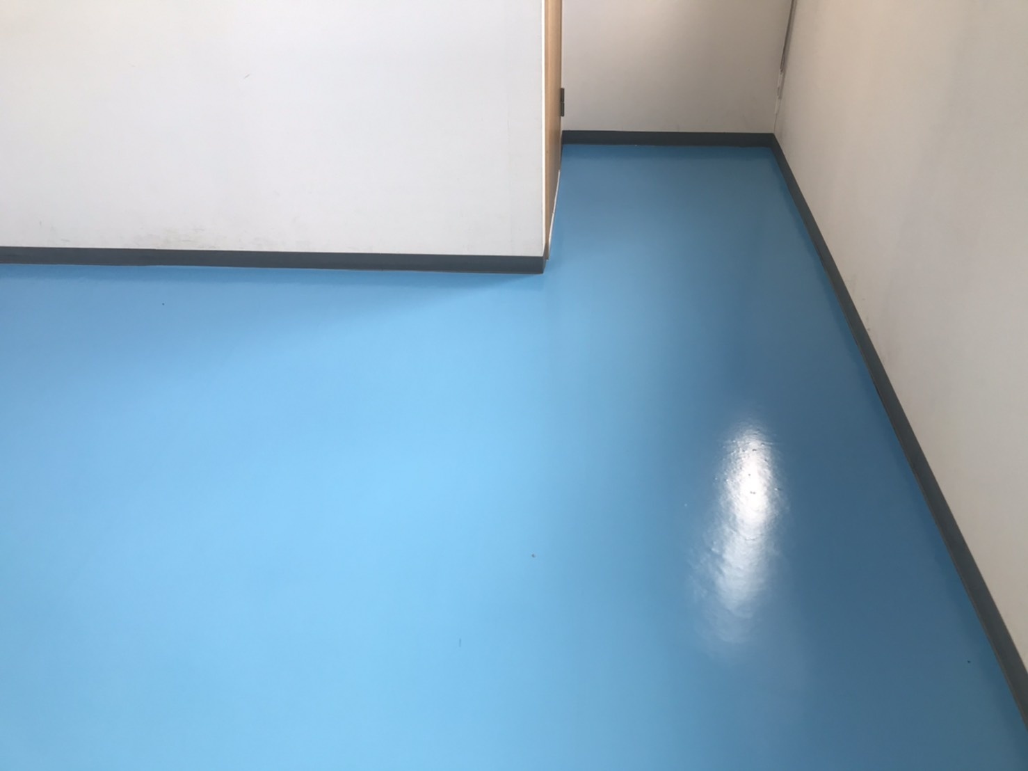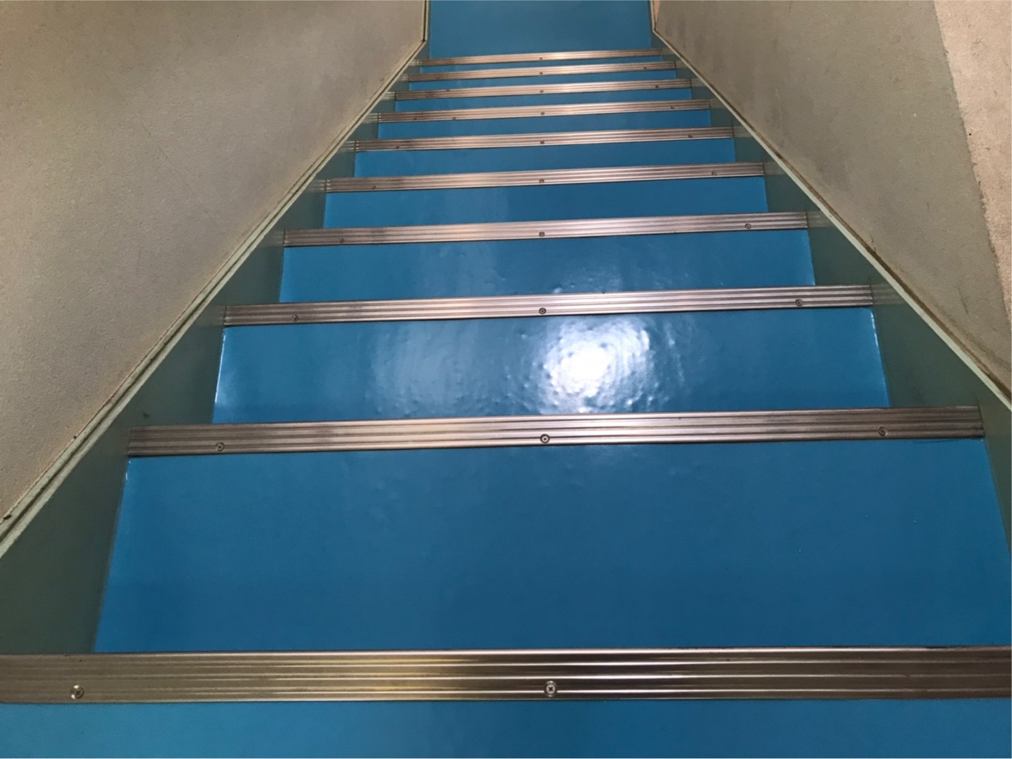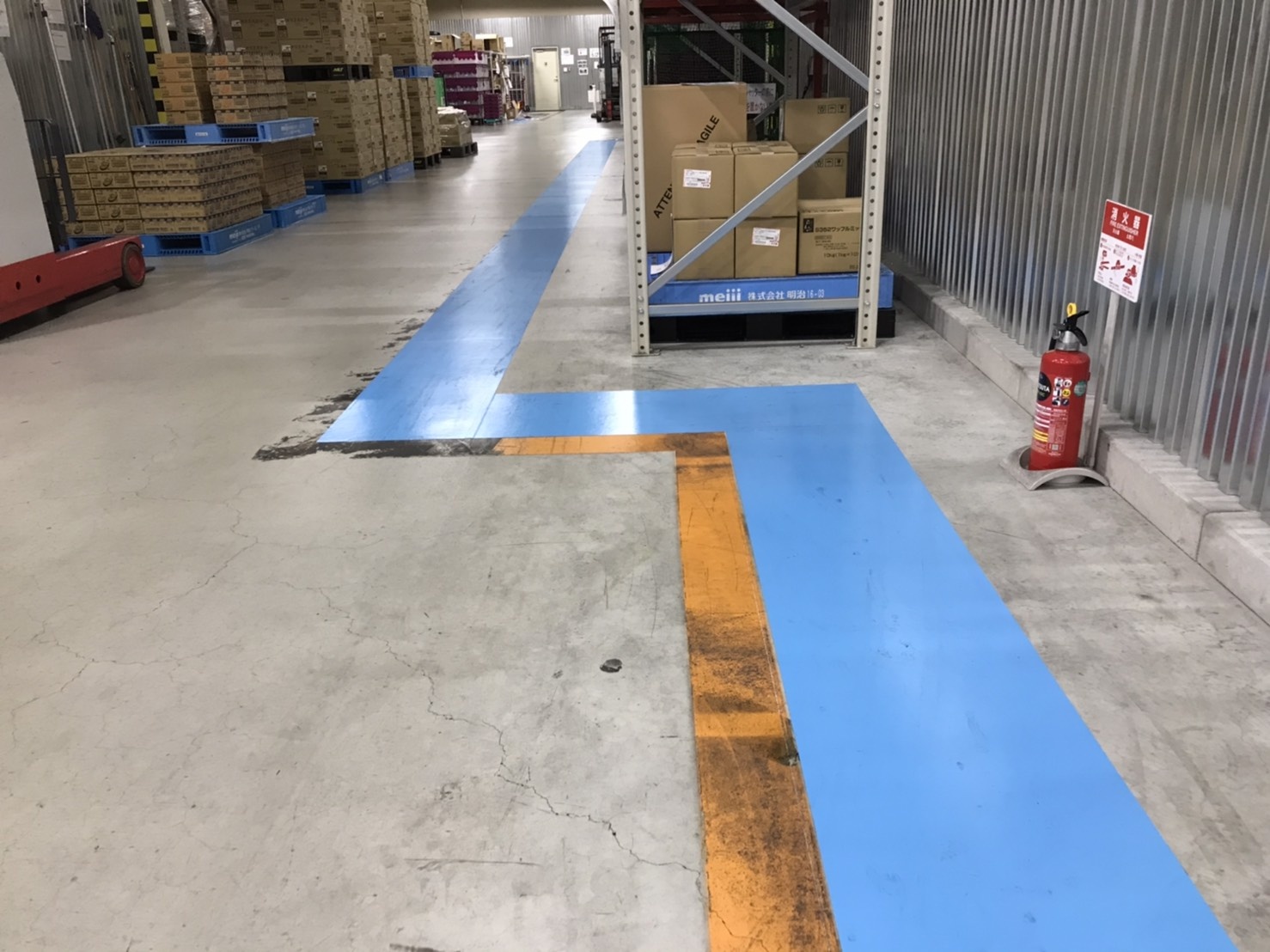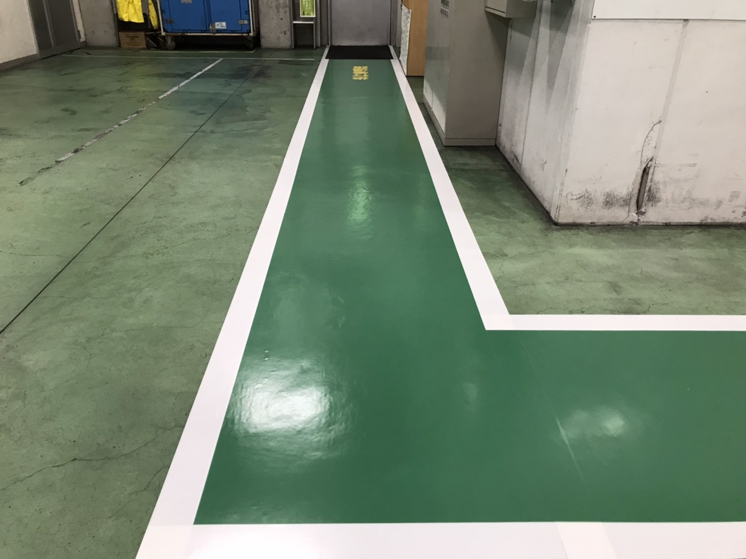 既存の塗床に対し、再度塗装するのではなく、ビバ歩行帯フィルムを貼付けました。今までの塗装よりも作業時間が短く、仕上がり後の見た目も良く、キレイが長持ちしています。