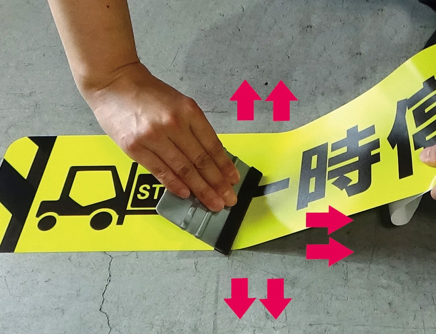 仮止めを剥がし、剥離紙を剥がしながらスキージー等で空気が入らないよう貼り付けていきます。