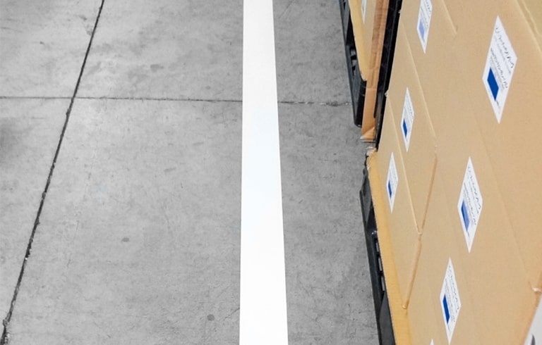 今まで曖昧だった台車の置き場やパレット置き場に対して、位置決めテープを導入しました。その後は、しっかり決められた位置に整理整頓するようになり、美観維持につながりました。