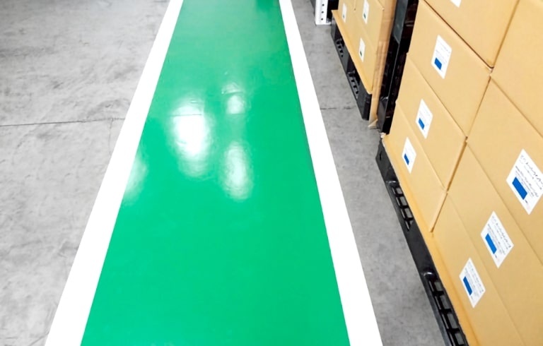 歩行帯フィルムの表層はノンスリップタイプのため、滑りにくく、工場や施設内も安全に歩行が可能です。