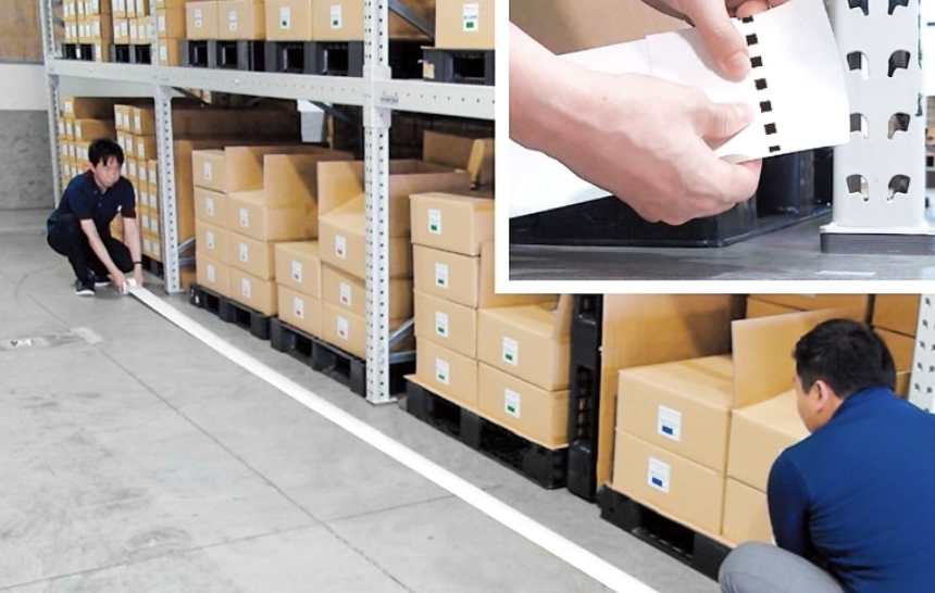 またキレイにはがせるラインテープなので、動線用ラインテープやレイアウトの区画用ラインテープとして変更時の貼り替えがとても楽になるためおすすめです。