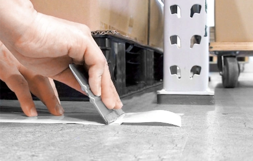 高耐久なのに剥がしやすいラインテープです。床面動線の変更や、店舗のレイアウト変更の際に、綺麗に剥がせます。