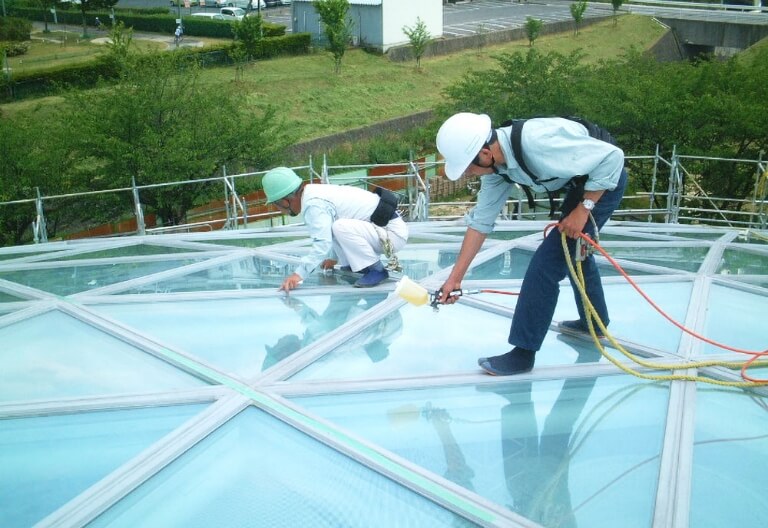 光触媒は紫外線を受けると汚れを分解する効果があり、そこに雨水が降ることにより自動的に汚れを洗い流すことができます。 これによってこまめに清掃を行わなくても美観を保つことができます。